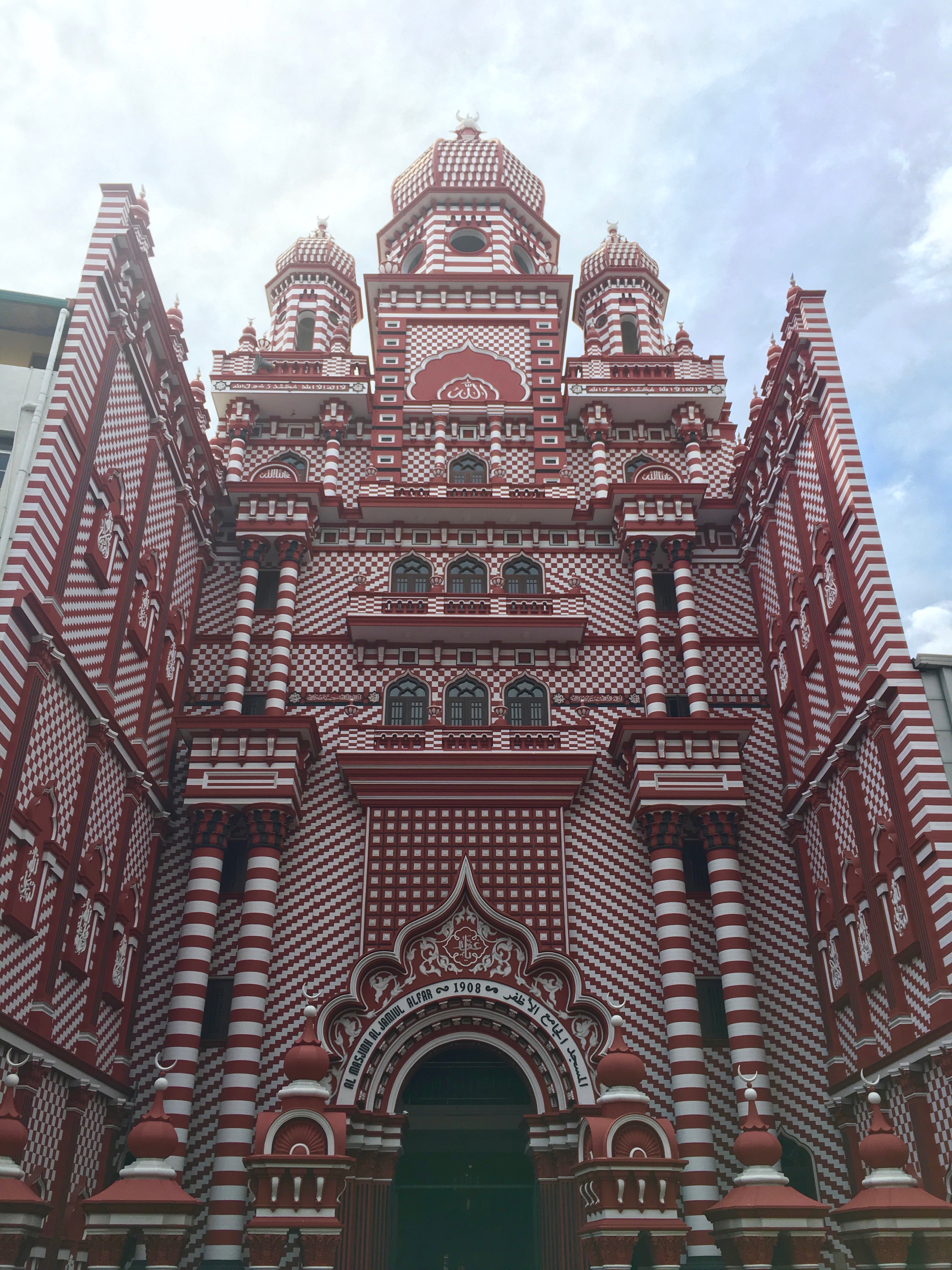 The front of Jami-Ul-Alfar Mosque – aka the Red Mosque.