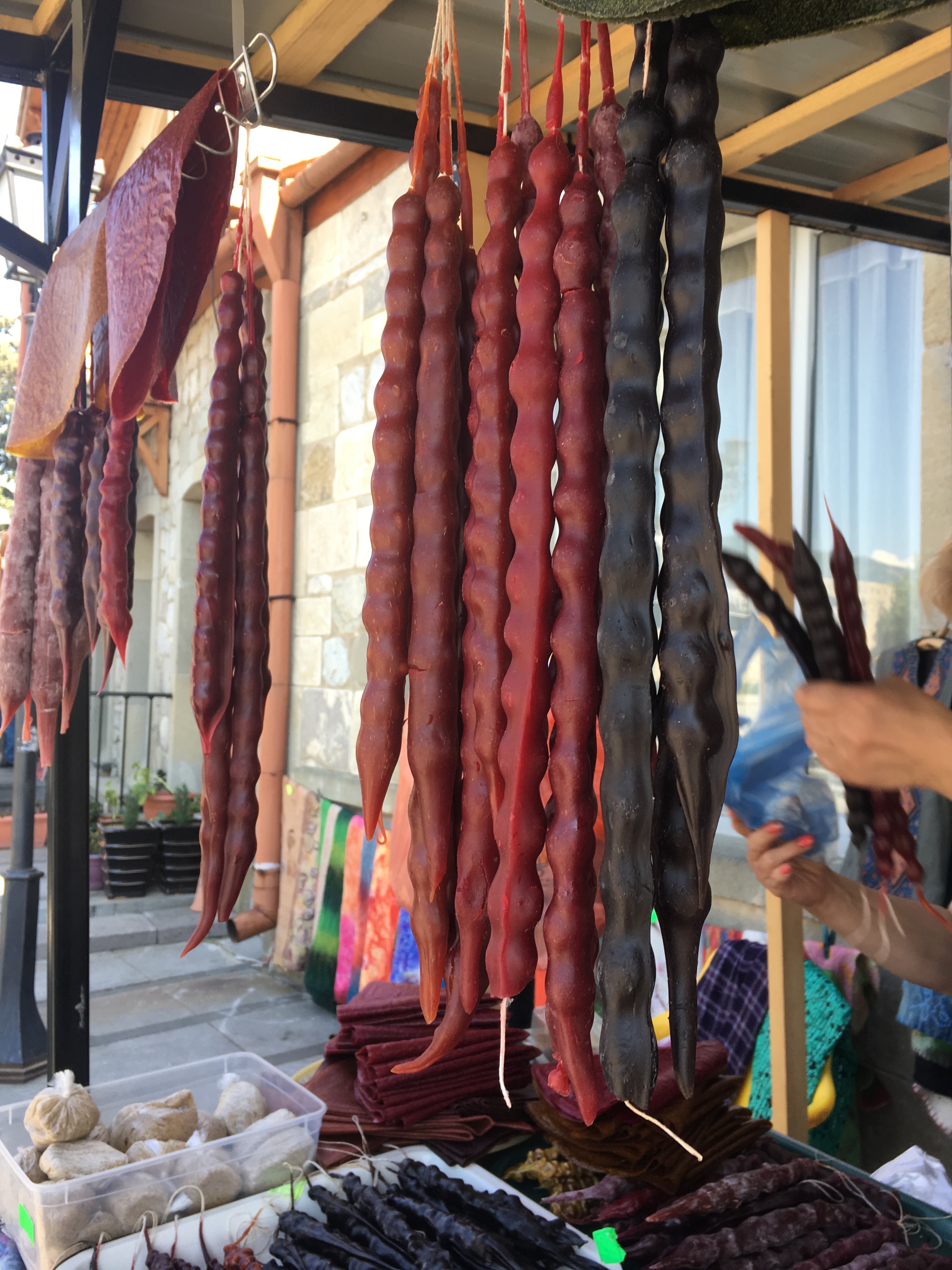 Churchkhela for sale on the street. They look like candles, but they’re actually nuts rolled in fruit pulp. They’re super tasty.