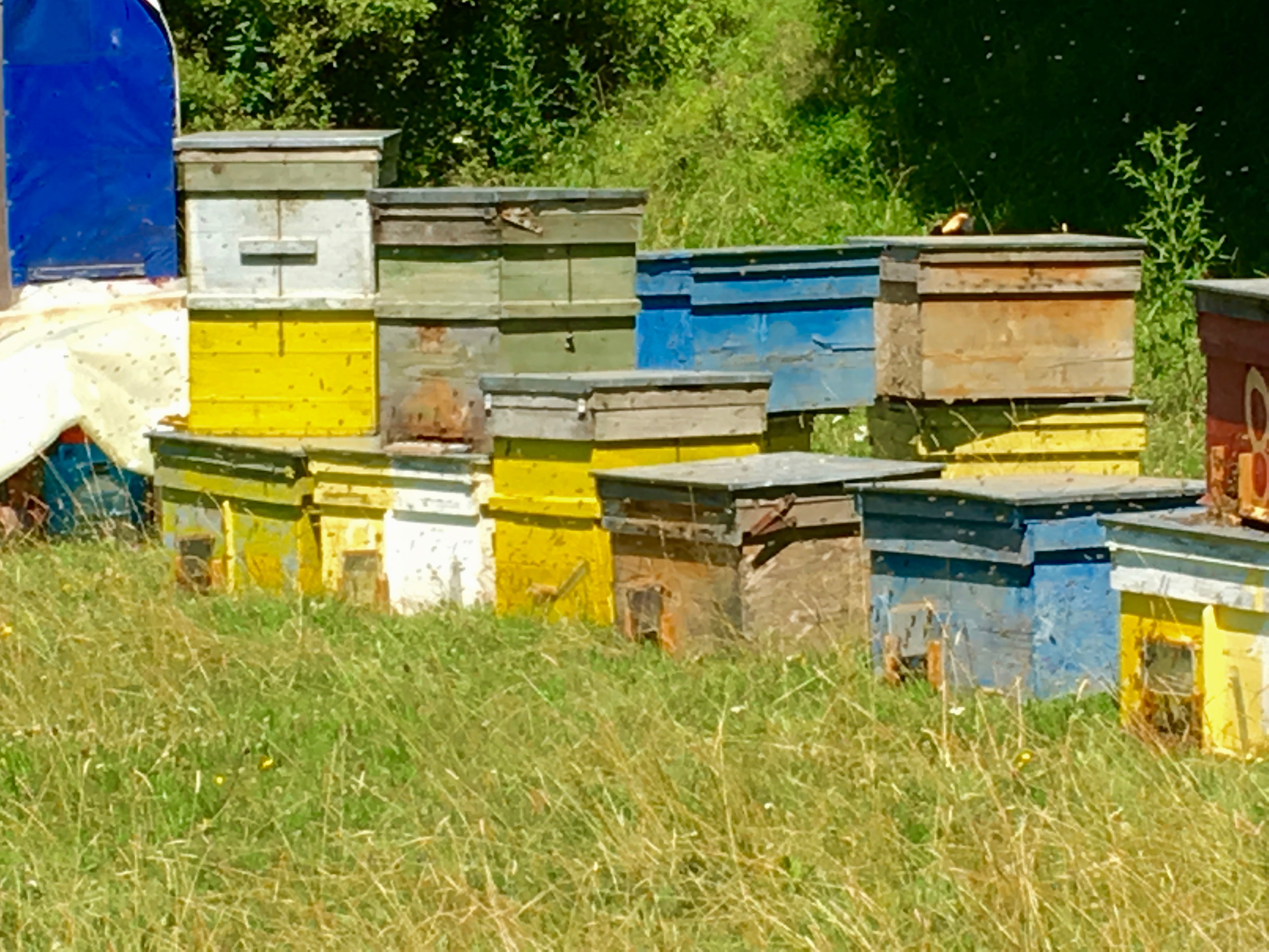 The hive boxes were so colorful.