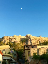 The daytime moon over the Acropolis.
